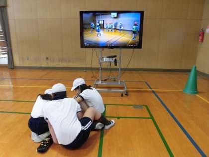 自分たちの動きをタブレットのカメラ機能を使って撮影し、