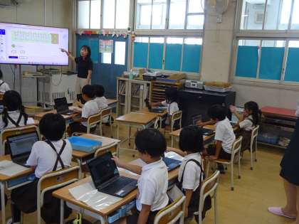 1年生はchromebookという学習者用端末を1人1台学校より貸与されて使います。今日は電源のつけかた、学びのポータルの使い方、心の天気の入力の仕方、デジタルドリルの入り方などたくさん教わりました。少しずつ使いこなしていってくださいね。