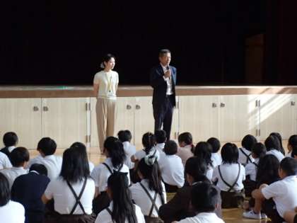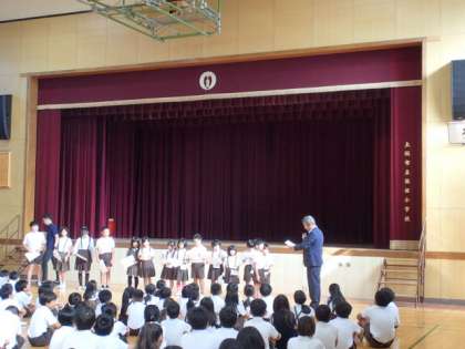 今日は全校朝会がありました。新しく着任された先生の紹介やデジタルドリルがんばった賞の表彰、今月の生活目標についてのお話などがありました。