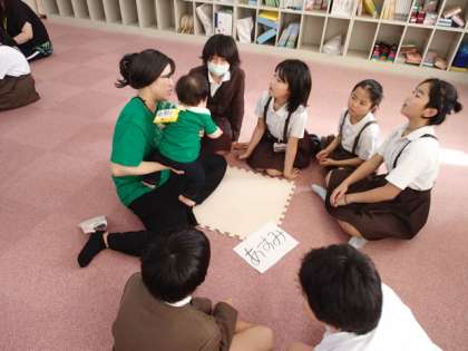 お母さんと一緒に赤ちゃんが学校に来てくれました。