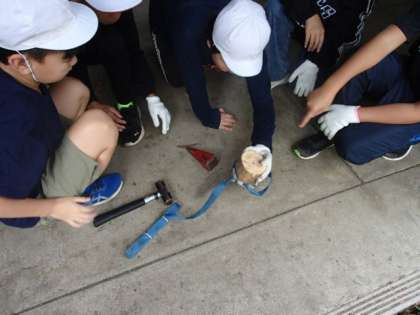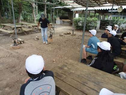 ハンマーで木を割ったり、ノコギリで協力して切ったりしました。