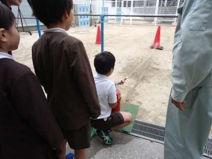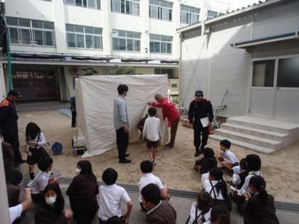 1〜4年生が煙テントや水消火器の体験をしました。