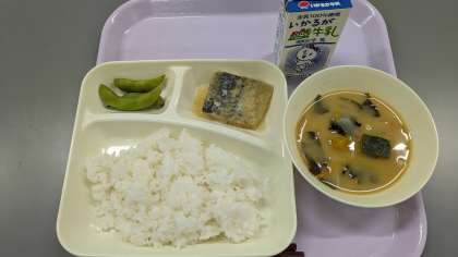 <さごしのみぞれかけ かぼちゃのみそ汁 えだまめ ごはん 牛乳>