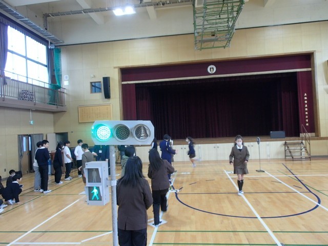3時間目に4・5・6年生の交通安全教室がありました。警察の方に、自転車の正しい乗り方や、安全に乗る方法等を教えていただきました。実際に作られたコースを自転車に乗っているつもりで歩きながら安全な乗り方について確認しました。