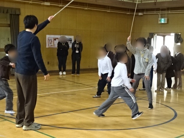 15分休みに大なわ大会を行いました。低中高に分かれて2学年ずつ実施します。