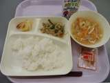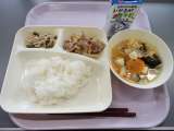 <豚肉のしょうが焼き 五目汁 ツナと野菜のいためもの ごはん 牛乳> 1学期の...