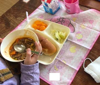 1年生も小学校で初めて食べる給食に嬉しそうです。