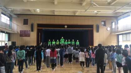 最後には、毎日見守っていただいていることへの感謝の気持ちを込めて、校歌を斉唱しました。