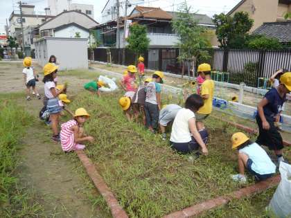 その後、学習園の雑草を抜いて、自分たちの学習園をきれいにしました。
