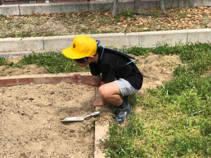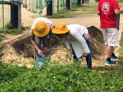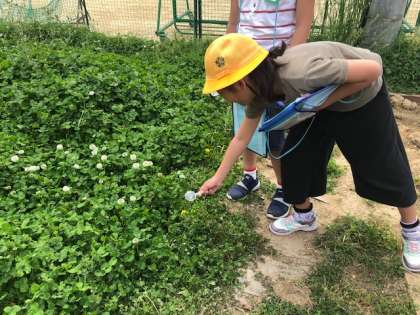 4年生が理科の学習として、学習園や校庭の草むらで、春の生き物さがしをしていました。