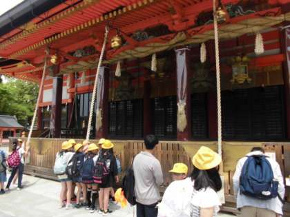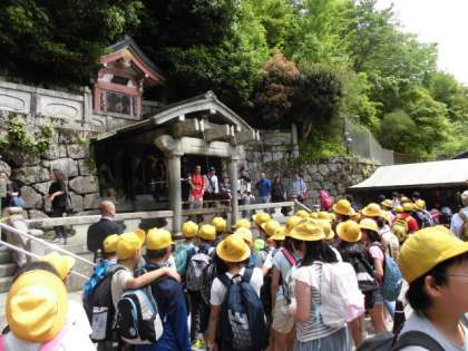 晴天に恵まれた今日、5・6年生は遠足で漢字ミュージアムや円山公園、清水寺に行きました。漢字ミュージアムでは、歴代の「今年の漢字」について展示がされていたり、漢字の成り立ちについての展示がされていたりしました。子ども達は、いろいろな漢字を学習することができて、とても楽しく活動できました。清水寺では、有名な「清水の舞台」を見学し、その迫力に驚いていました。