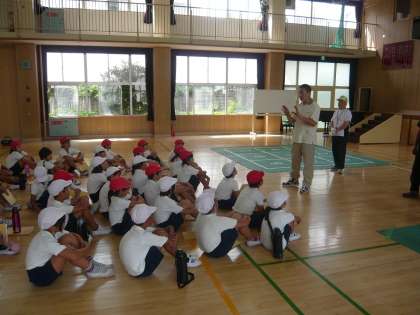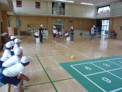 子どもたちは、試合方法やルールなどはすぐに理解しゲームに夢中で取り組みましたが、ボールを投げる力加減やコントロールが難しかったようです。