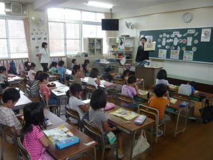 学習参観で、勝山小学校の山本栄養教諭にお越しいただき、1年生の栄養指導をしていただきました。