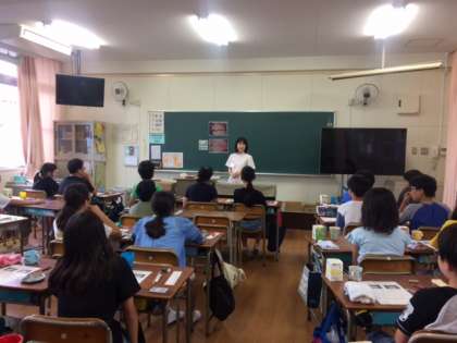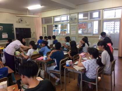 学校歯科医の田中先生と教育委員会の戸木先生にお越しいただき、6年生で「歯・口の健康教室」を行いました。