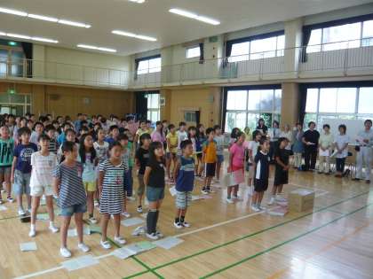 校歌も斉唱し、子ども達からお礼の意味をこめて、5年生、6年生の順に昨日の音楽発表会で合唱した歌を歌いました。