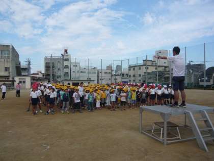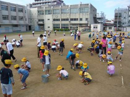 児童朝会に続いて、全児童で石ころ拾いを行いました。