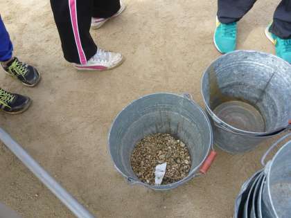 運動会でけがをしないように、よい演技・競技ができるように願いをこめて、一個一個、一粒一粒、石を拾いました。