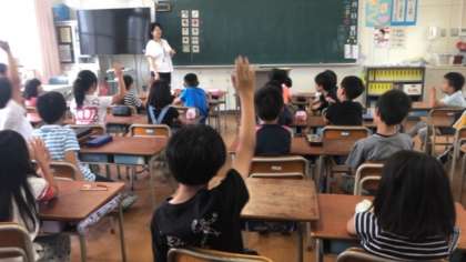 今日も北鶴橋小の栄養教諭の先生にお越しいただき、3年生と6年生の食に関する指導を実施していただきました。
