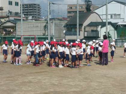 早速、1・2年生が、運動会に向けて体育をしていました。