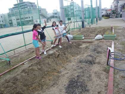 5年生女子が、自主的に雑草を抜いたり耕したりしていました。