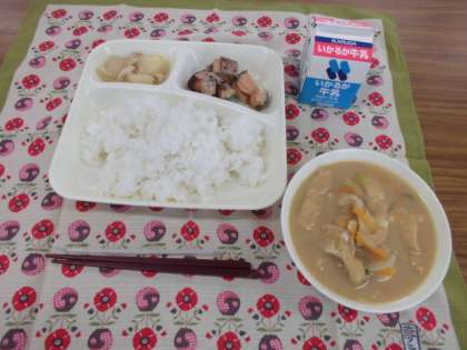 今日の給食の献立は、「さけのつけ焼き、みそ汁、とうがんの煮物、ごはん、牛乳」でした。