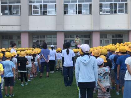今日の児童朝会では、学校長から姿勢についての話がありました。