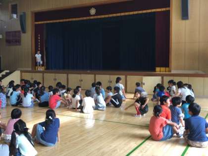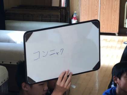 今日の児童集会は、集会委員会による「カーテン隠しもの当てゲーム」でした。