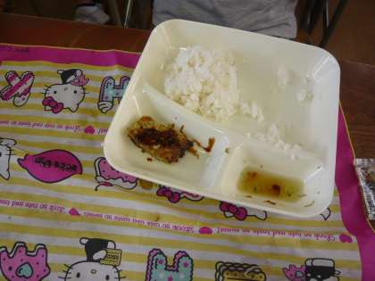 おかわりする子どももいて、すべてのおかず、ごはん、牛乳を完食しました。