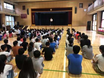 本日、講堂で1学期の終業式を行いました。1学期の締めくくりの式らしく、子ども達が講堂に入る姿、待っている様子は大変立派でした。