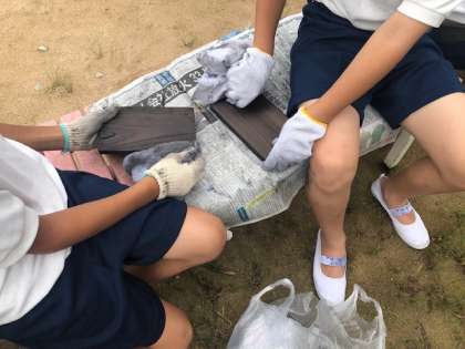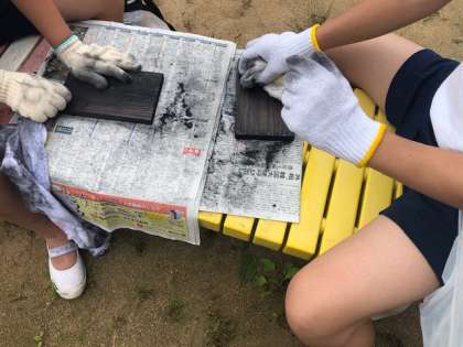 子ども達、真剣に真剣に磨いています。