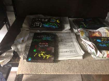 子ども達の作品が完成しました。乾燥室で乾燥を待ちます。