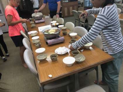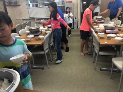 食事係が夕食の用意です。慣れた準備でてきぱきと進んでいます。
