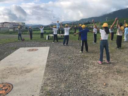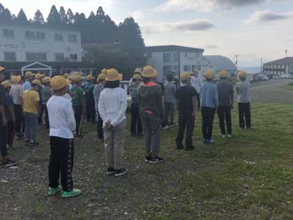 三日目の朝のつどいです。元気に体操をして、一日をスタートします。