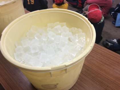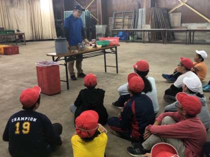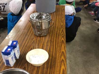 次はアイスクリームづくりです。涼しい作業場でアイスクリームを作ります。まずは、スタッフの方から説明を聞きます。