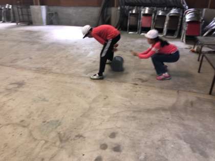 密閉した容器を。みんなでごろごろ転がします。20分間転がし続ければ中でしっかり固まります。