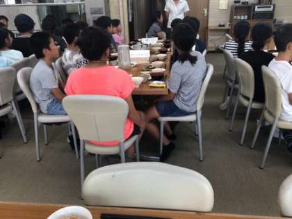 林間学習での最後の食事です。炊き込みご飯を用意してくださいました。最後も美味しくいただきます。