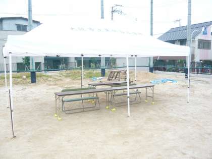 今日は、テント内に受付用の机をPTA実行委員の皆様にご準備いただきました。