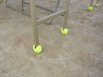 机の脚にはテニスボールをはめて、外使用にしています。
