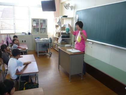 一年生は、運動会演技「えがおで イェイ イェイ イェイ」で使用した手袋を回収していました。