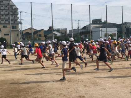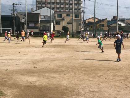 大変良い天気のもと、広い運動場を全員で元気に走り回りました。