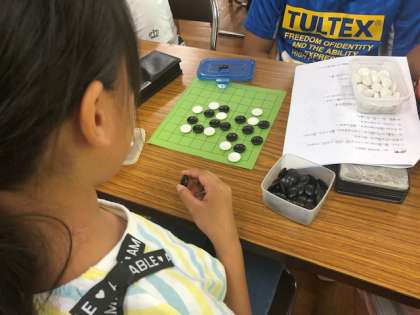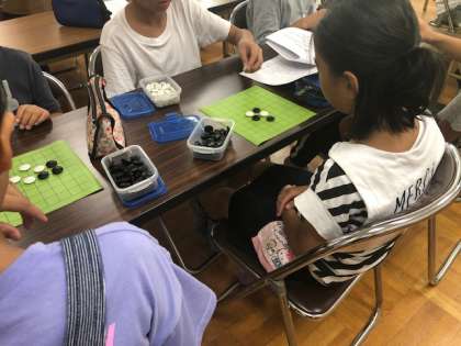 囲碁の簡単なルールや対戦方法を教えていただき、さっそく子どもたち同士で対戦しました。みんな真剣に考えながら碁を打っていて、熱戦が繰り広げられていました。