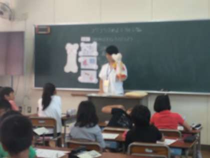 3年生の食に関する学習のテーマは、「骨や歯をじょうぶにしよう」。骨や歯のもとになるカルシウムの働きや、カルシウムを多く含む食品について詳しく学習しました。