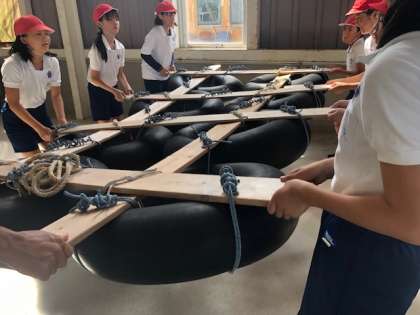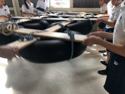 結び終わったら、いかだを揺らしてゆるいところがないかどうかを確かめます。
