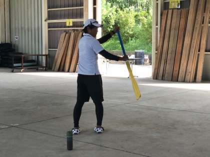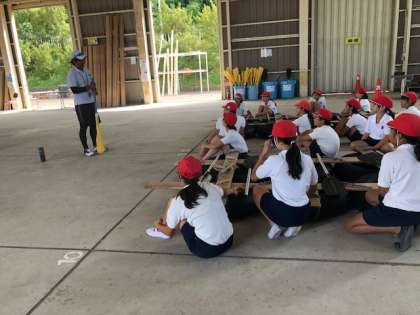 全ての班が完成したので、いかだの漕ぎ方を教えていただきます。