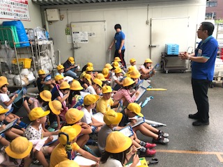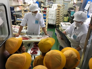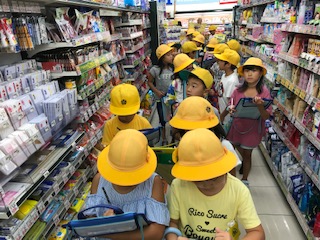 3年生が社会見学で桃谷駅前のスーパー「万代」に行きました。