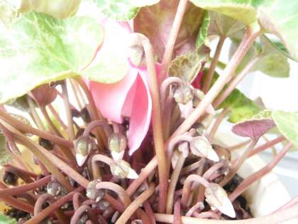 去年のシクラメンが今年の夏を乗り切って、今年も花芽をいっぱいつけています。