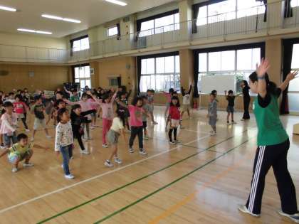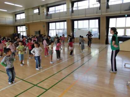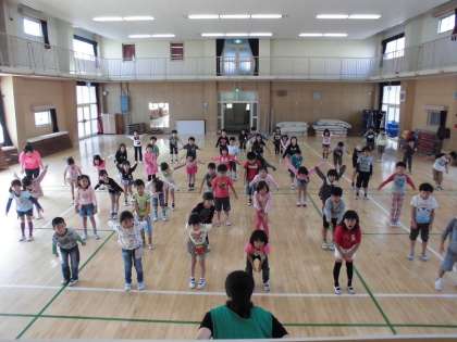 身体ほぐしの体操の後、韓国語の歌「アンニョンハセヨ」にのせてフォークダンスを踊りました。踊っているうちに「アンニョンハセヨ」(おはようございます、こんにちは、こんばんは)が覚えられるようになっています。楽しく歌い踊っていました。