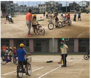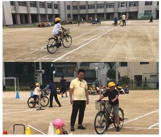中学年・高学年の交通安全指導は、自転車での通行です。