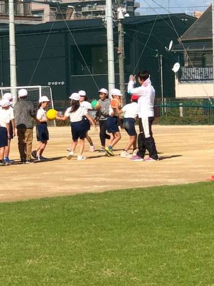 今日の休み時間に「たて割班遊び」をしました。今度の「たて割班スポーツ交流会」のための「ボール運びリレー」の練習です。6年生が説明をし、みんなで練習しましたが、息を合わせて行うのが、なかなか難しい競技です。
