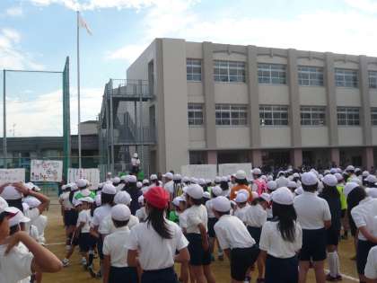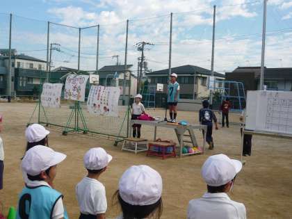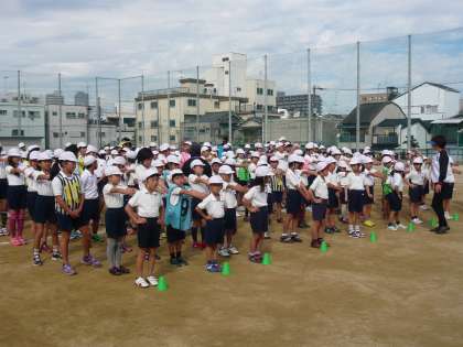 開会式に続いて、縦割り班の低学年・高学年に分かれてのドッジボールが始まりました。